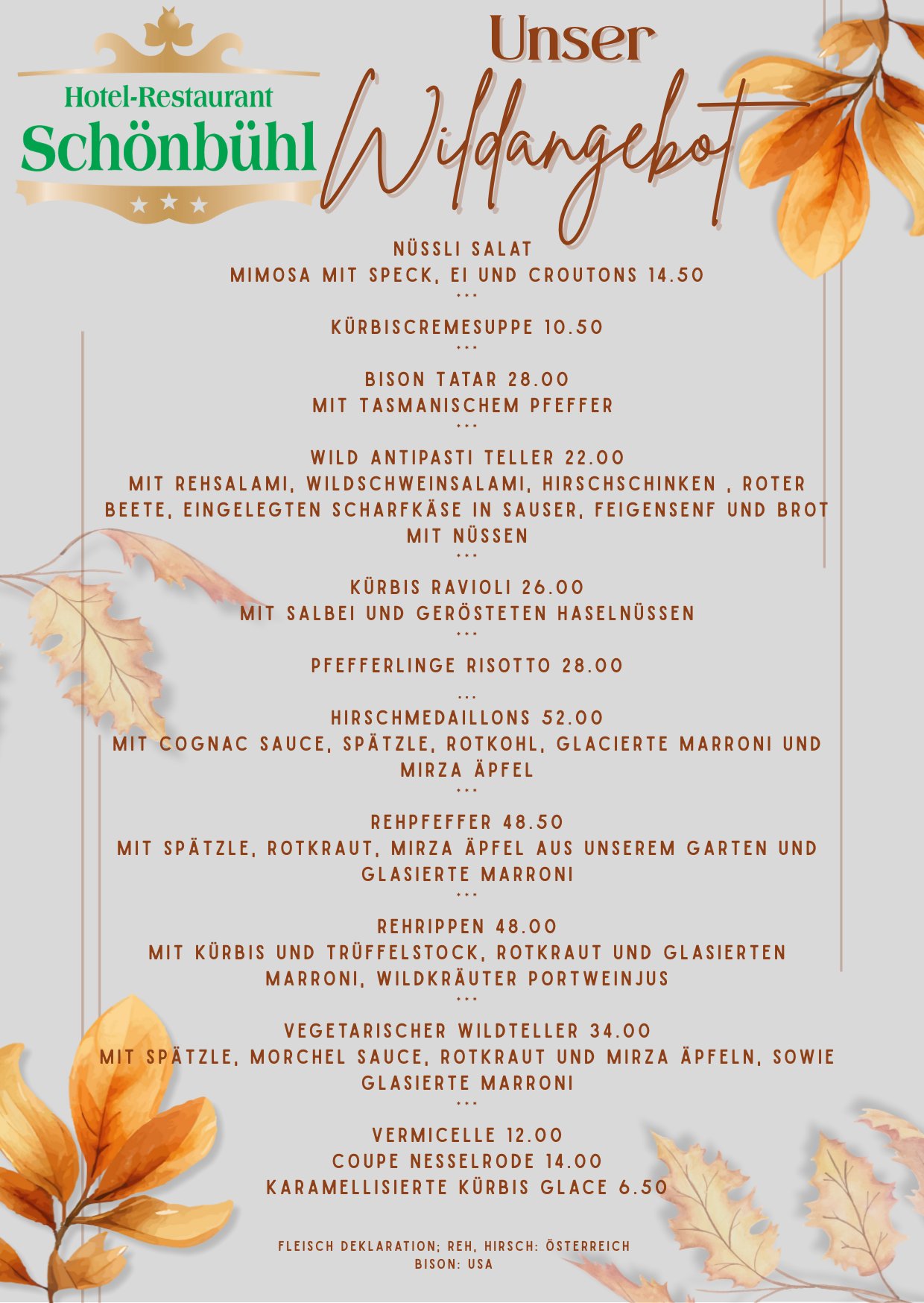 Herbstzeit ist Wildzeit – genießen Sie jetzt feinste Wildspezialitäten.